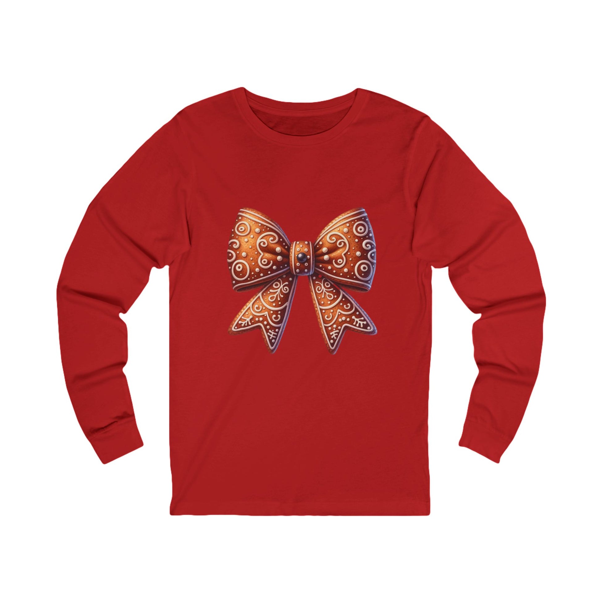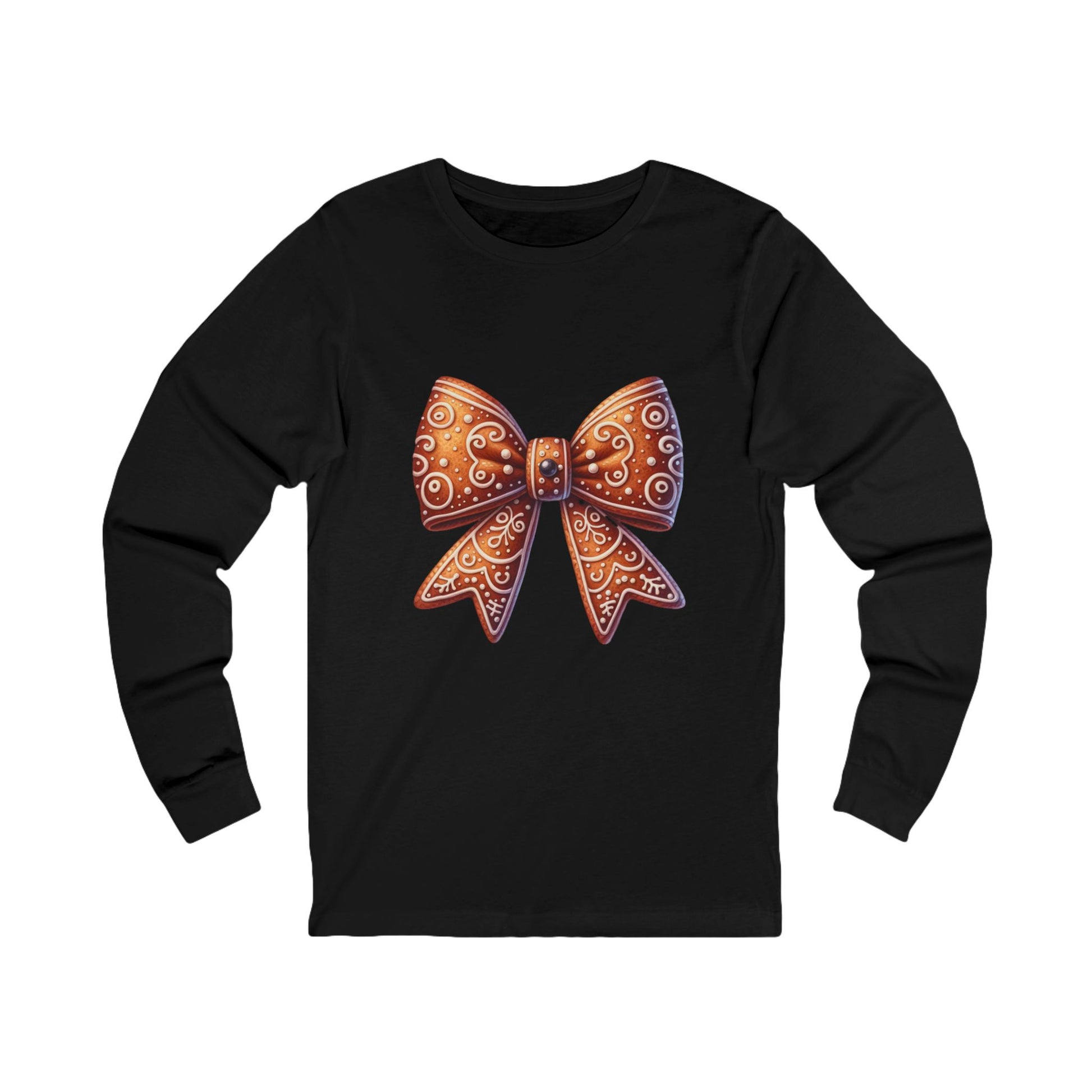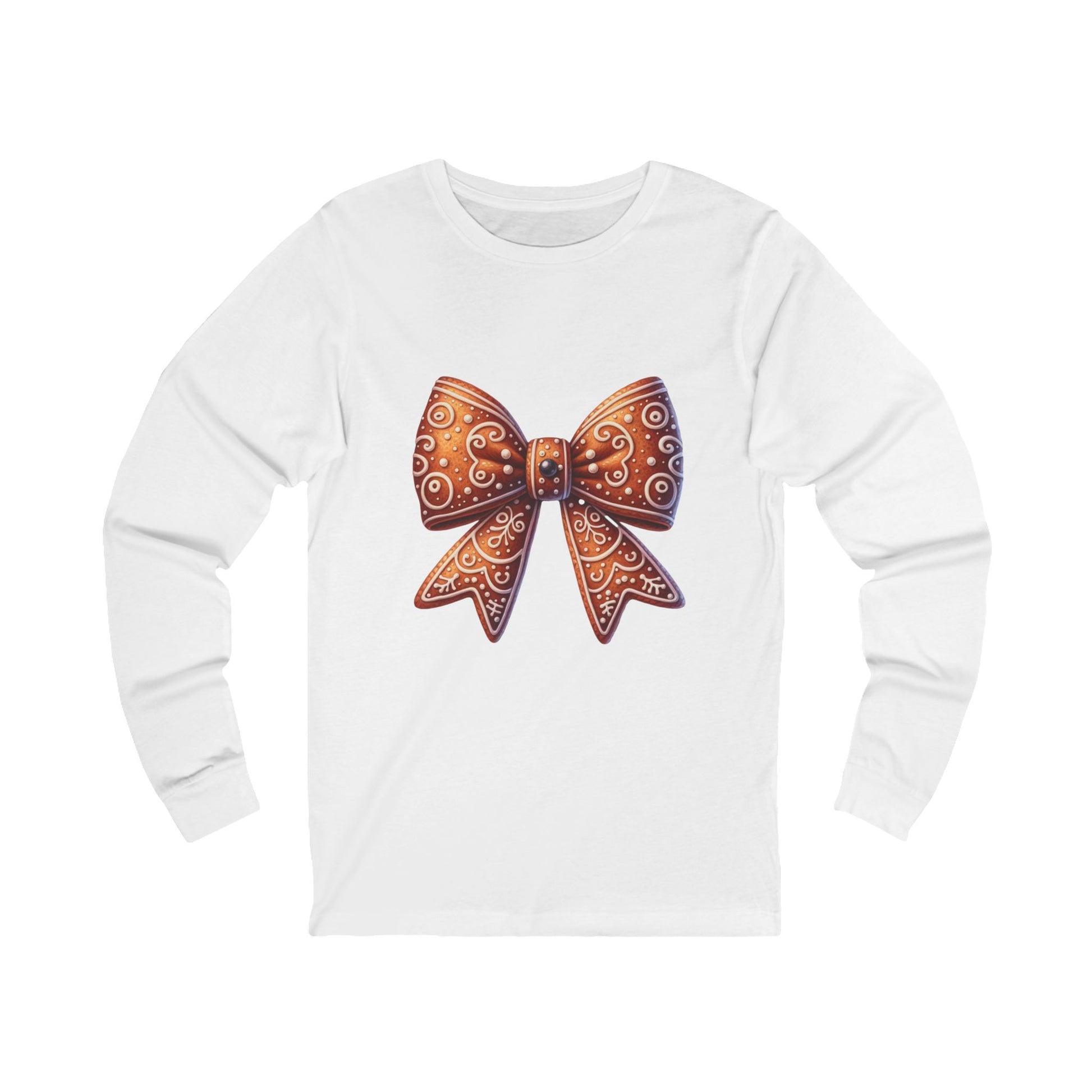 Bow Graphic Long Sleeve Tee — Gingerbread Bow Holiday Shirt