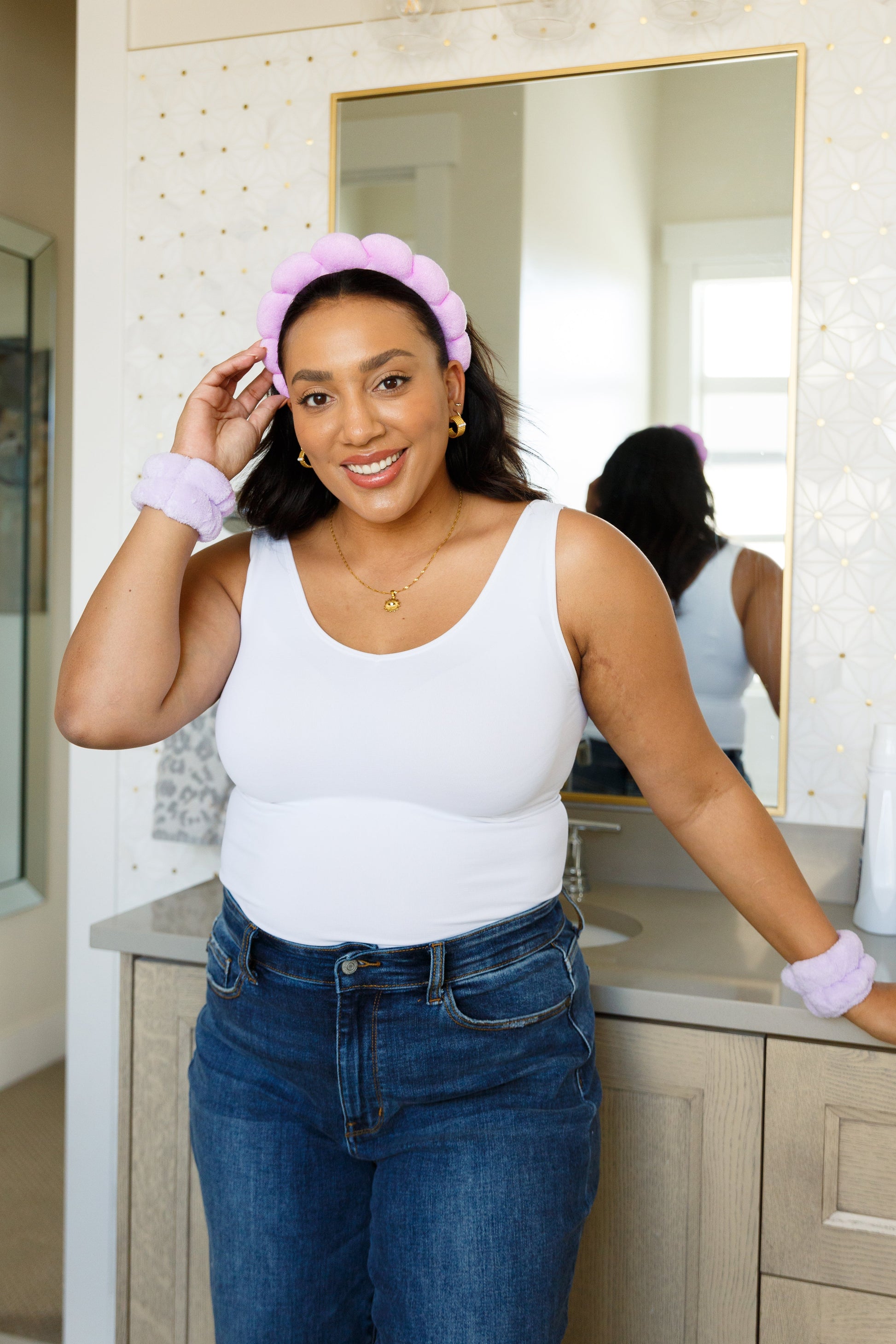 This trending braided sponge headband is covered in highly absorbent terry cloth to soak up moisture as you wash your face or apply your favorite skincare. Convenient wristbands catch drips from running down your arms!